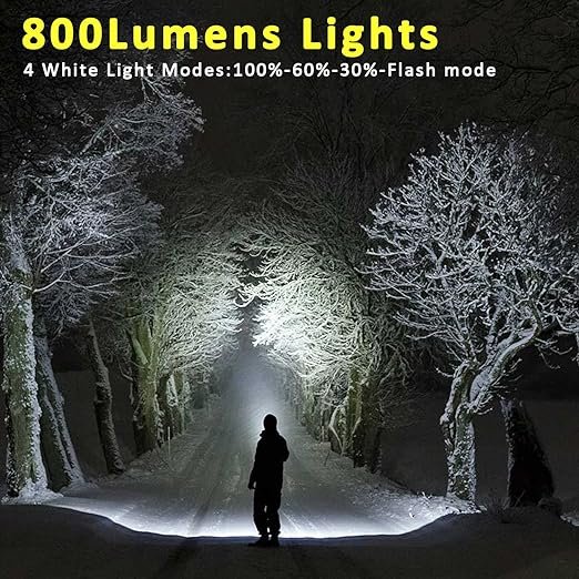- The flashlight rechargeable has 4 lighting modes to meet your different need: cob 100% high light, cob 60% middle light, cob 30% low light and cob strobe mode. You can long press for 3 seconds in any mode to change to 100% high light mode.Do not look directly into the cob light.
