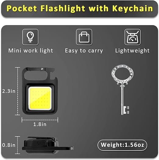 These handy COB Rechargeable Keychain Lights work excellent. They were given as stocking stuffers. I like that they are rechargeable, light provided is sufficient.