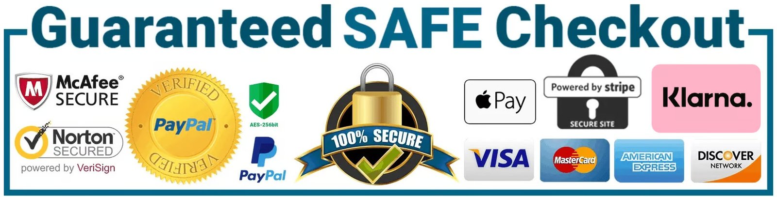 The Checkout Process is Guaranteed to be 100% Safe and Secure with Visa, Mastercard, AMex, Discover, Apple Pay or PayPal.